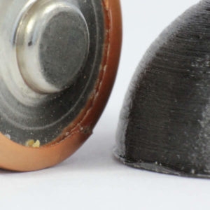 A similar test was done using a 1.00mm nozzle, but with 0.05mm layer height. In this set-up, the layer height is only 5% of the nozzle size. The results are quite interesting. The picture below shows a 20mm diameter half-sphere side by side with an AA battery. The zoom is pretty high, and we still have a hard time seeing the layers.